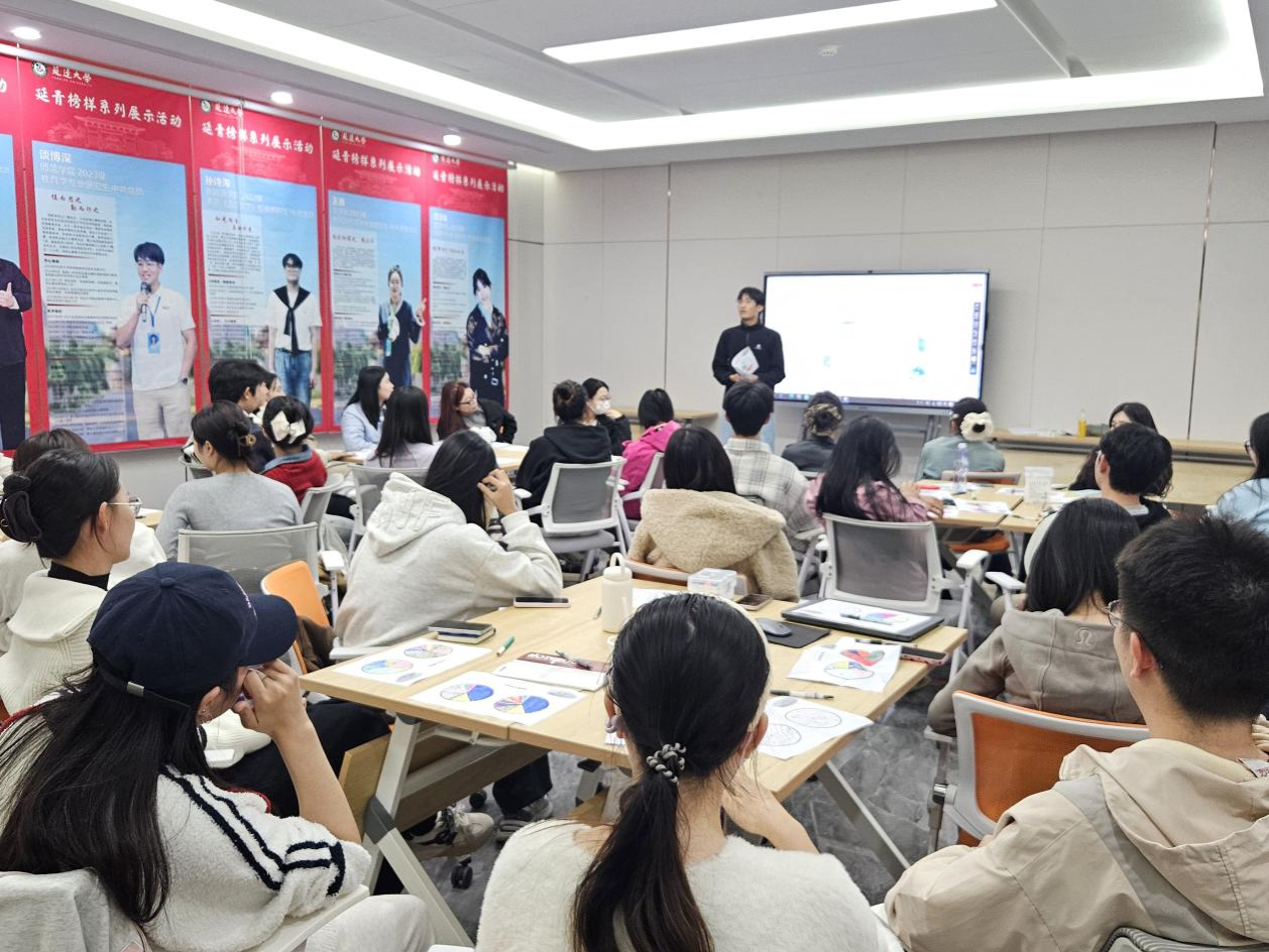 随后,“时间披萨” 环节将活动推向高潮,郑老师以披萨饼状图类比24小时,引导新生用不同颜色标注学习、锻炼、休息等活动的时间占比。新生完成个人“时间披萨”后,在小组内分享启发,组长代表汇报本组时间规划特点与共性问题,交流中新生优化时间安排,学会均衡高效分配时间。最后,郑老师鼓励大家将时间管理方法运用于研究生生活,平衡学习、科研与生活,实现个人成长与专业发展的双重提升。