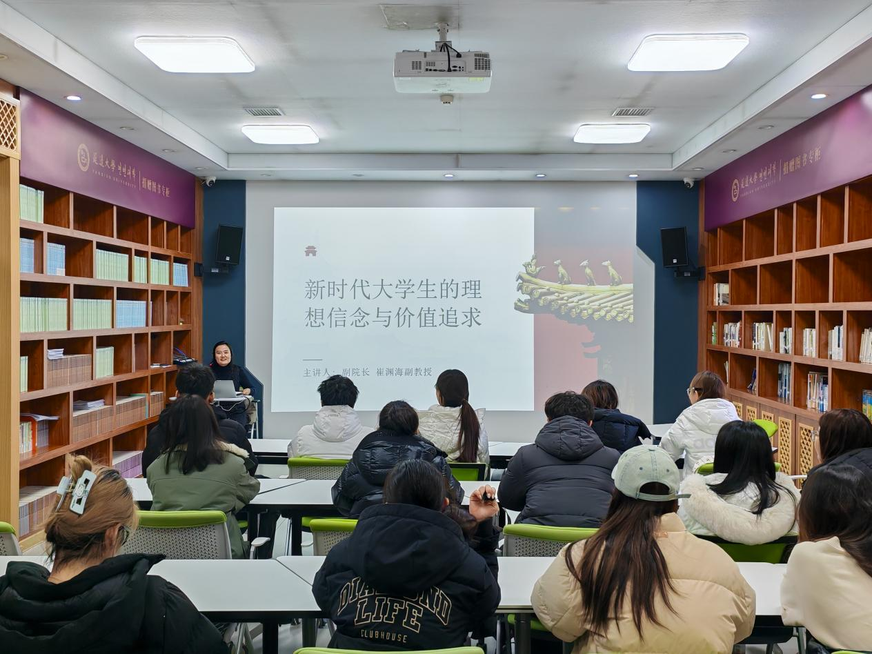为深化新时代高校思政教育实效,引导入党积极分子筑牢信仰之基、明确价值追求,11月19日,艺术学院在卧龙书院开展新时代大学生的理想信念与价值追求专题讲座暨2025年下半年入党积极分子集中培训。全体入党积极分子参与培训,艺术学院副院长崔渊海做主讲。