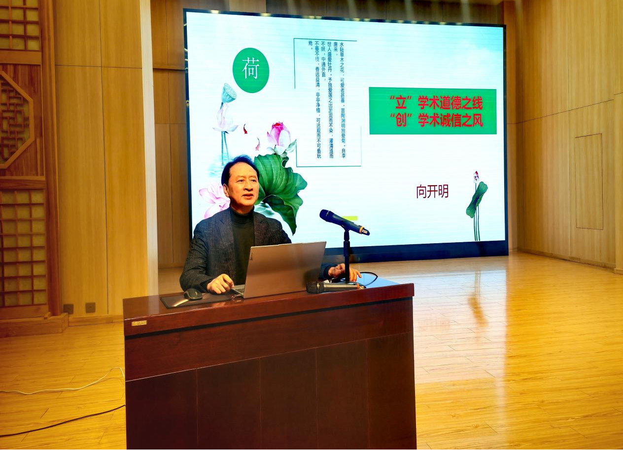 结合学风不正、学术不端等真实案例,向开明进行深度剖析与警示。他着重强调,诚信是学术研究的立身之本,更是学者的核心品质,唯有坚守诚信原则,才能保障学术成果的真实性与严肃性。尊重原创、杜绝抄袭是保护学术创新活力的关键,学术研究唯有秉持“守正创新” 理念,既坚守学术底线,又勇于探索突破,才能确保研究的客观性与公正性,真正实现学术价值。