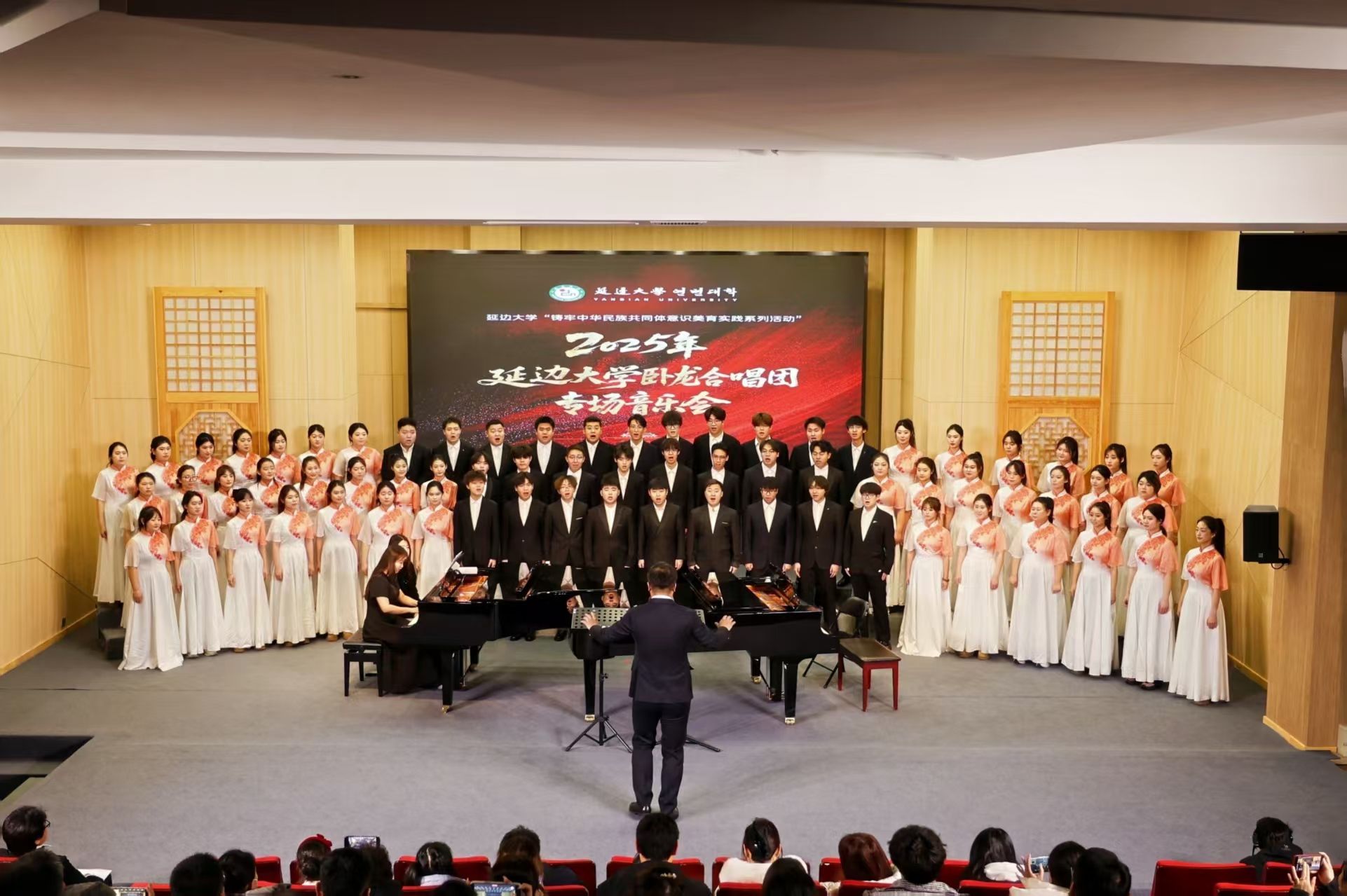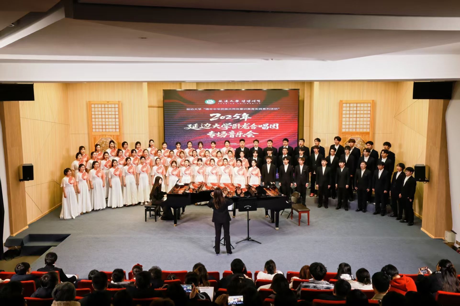 12月28日,由美育教育工作委员会、艺术学院主办,艺术学院音乐学专业承办,“美育”明礼立心辅导员工作室协办的“铸牢中华民族共同体意识”美育实践系列活动——2025年延边大学卧龙合唱团专场音乐会在艺术学院音乐厅精彩上演。