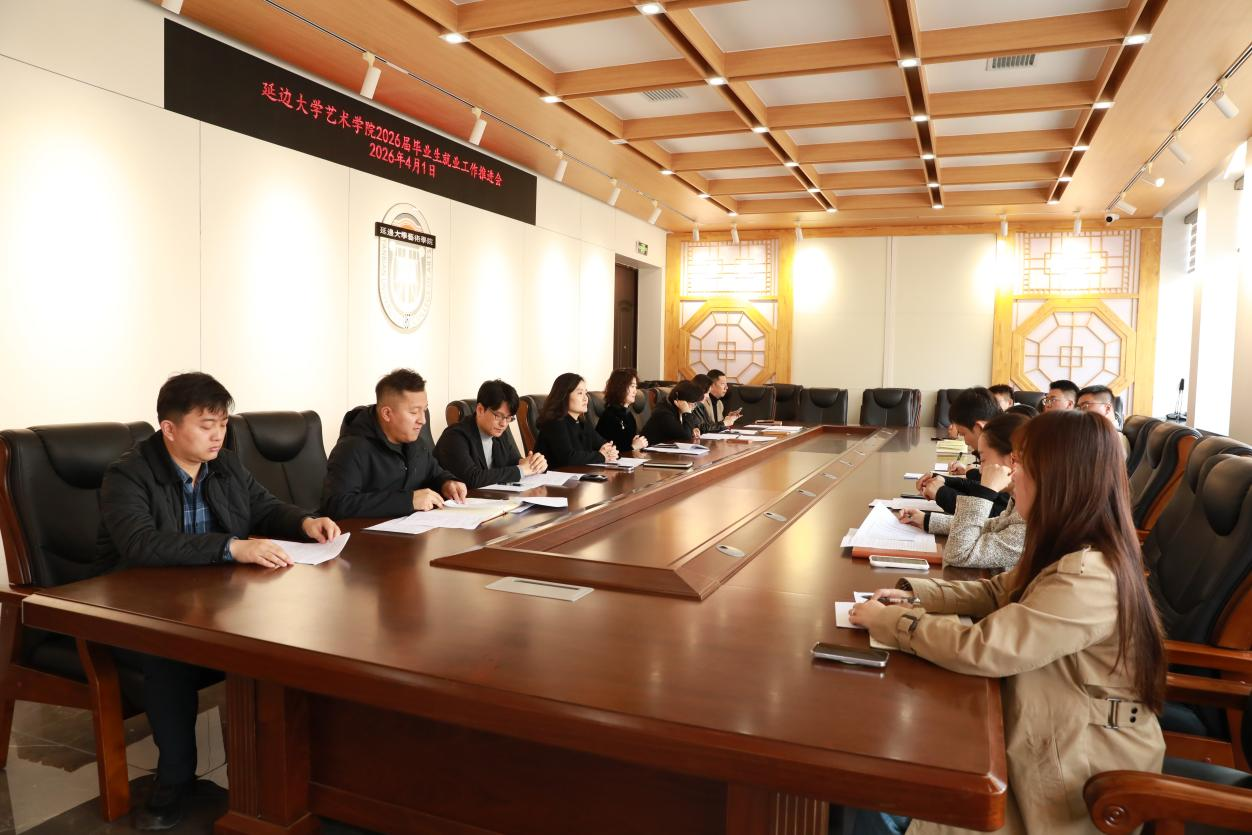 为扎实推进2026届毕业生就业工作,全力促进毕业生高质量就业,4月1日,延边大学艺术学院在多功能会议室召开2026届毕业生就业工作推进会。院领导班子、各学科主任、专业书记和主任、学团等相关部门负责人以及全体辅导员参加会议。会议由学工办主任姜贺洋主持。